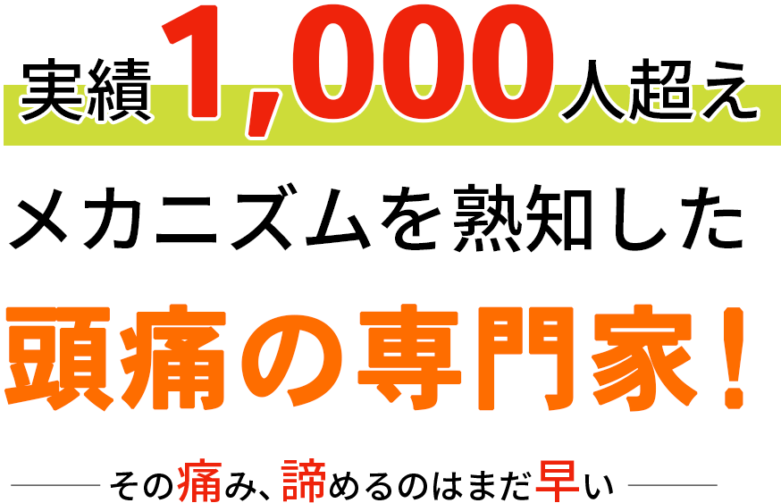 about us 当院について 筋肉の緊張による頭痛が多発 当店にお越しいただくお客様においても、筋肉の緊張から起こる頭痛を抱えていらっしゃる方が一番多く見受けられます。頭の痛みに対して頭をほぐすだけの施術では根本的な痛みの改善にはつながりません。当店では頭に加えて首の骨の周りのインナーマッスルにアプローチして改善と再発防止を図ります。 肩と首にアプローチして頭痛ケア 数多くのお客様を見てきたなかで、肩こりをお持ちの方は頭も痛いとおっしゃる場合が多いです。当店では肩こり改善のために首も併せて施術を行ってきましたが、首の施術を受けたことで自然と頭痛も緩和したというお声をいただくことが増え、「頭痛の原因は首にあるのではないか」と考え、勉強を重ねるうちに現在の施術法を確立いたしました。 施術歴25年以上のノウハウ 施術歴25年以上、これまでに1,000人以上のお客様の身体の状態やお悩みと向き合ってきた実績があります。長年培ってきた技術や知識、ノウハウは誰にも負けない自信があります。当店は頭痛の専門家ですが、施術後は首の動きもしっかりと確認いたします。また、最初に状態の確認を行って「手技で対応できるものなのか」「病院に行くべきなのか」をしっかりと判断し、最適な選択でお客様がより良い方向へ向かえるようにサポートしてまいります。 詳しく見る click mechanism なぜ頭痛が起こるのか? 詳しく見る click symptoms 頭痛の特徴 詳しく見る click voices お客様の声 慢性的な頭痛に悩む日々にさようなら 20代後半から慢性的な眼精疲労と頭痛に悩まされていました。一度病院に行ってみましたが異常はなく、ずっと付き合い続けていくのかと諦めかけていました。友人からの口コミでこちらで施術をお願いすると、頭痛の原因もケア方法も的確に教えていただけました!何度か通わせていただくうちに嘘のように目と頭の痛みがスッキリ。快適な日々を送ることができ感謝しています。(30代/女性) 頭だけじゃない、首も肩もスッキリ 頭が痛いのか、首や肩が凝っているのかもはや分からないほど全体的に痛みが…。施術をしていただくと、首も肩もスラスラ回せるようになり、ズキズキとした頭痛も緩和。長年悩まされていたのでもっと早くにお願いすれば良かったです。遠方から足を延ばしたかいがありました!(50代/男性) 詳しく見る click